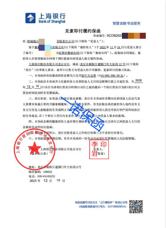 采购类保函(金属材料采购:铝材、钢材,能源材料采购:碳酸锂,医疗器材采购:CT、X射线等)